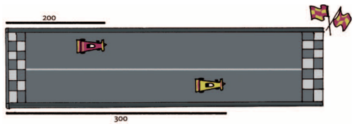 1. ¡Carrera de autos! El auto A salió y avanzó 200 metros, el auto B va más adelante y ya avanzó 300 metros. ¿Por cuántos metros le va ganado el auto B al auto A?![]() 2. La ruta entre la ciudad de Neuquén y la ciudad de Viedma es de 650 kilómetros. Un auto salió de Neuquén para ir hacia viedma y ya recorrió 400 kilómetros, ¿cuántos kilómetros faltan recorrer para llegar?