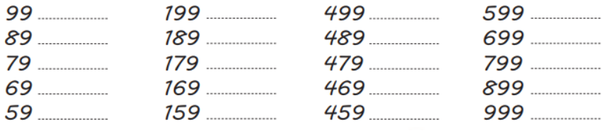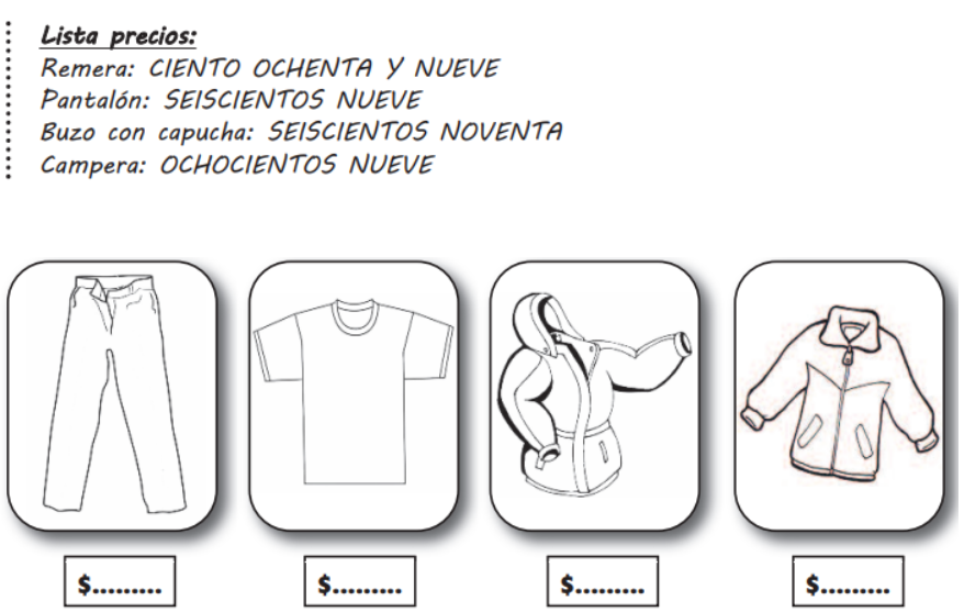1. En la vidriera de un negocio están colocando los carteles con los precios de los productos. En la lista está la información de cada precio. Escribí los números con el precio que corresponde a cada cartel.![]() 2. Decidir cuál es el número siguiente a otro a veces no es tan fácil. ¿Cuál es el número siguiente a...? ![]() |