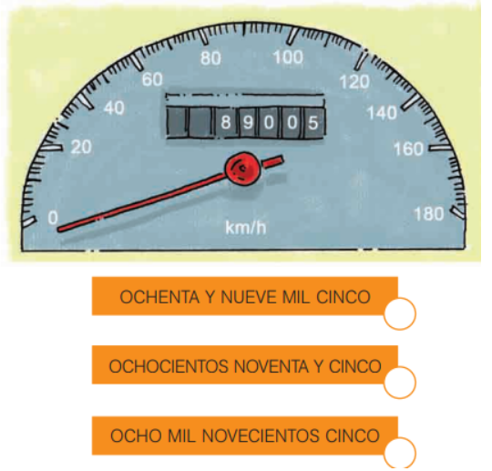 El cuenta kilómetros de la camioneta de Manuel indica la distancia que recorrió hasta ahora. Marquen con una cruz el cartel que corresponde a la cantidad que recorrió.![]() |