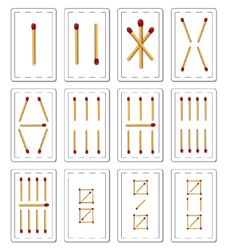 Estas cartas tienen el número y le faltan algunos fósforos. La idea es completar las cartas con los números que faltan. ![]() |