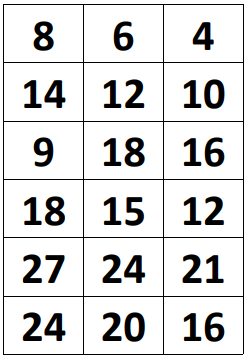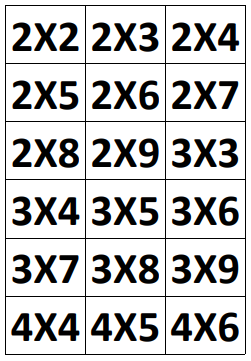 | En este enlace hay un archivo .pdf con seis tablas pitagóricas para imprimir, recortar y repartir. Las tablas son así: ![]() En este archivo hay una fichas para imprimir en doble faz, quizá en cartulina o un papel de 110 gramos. Van a quedar impresas la multiplicación de un lado y el resultado del otro. Se imprime, serecota, se mezclan y a jugar. ![]() ![]() |
