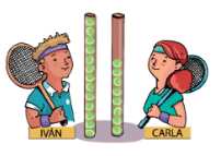 Problemas para comparar 1. Para el campeonato de tenis están guardando las pelotitas que van a usar en tubos de plástico. Iván tiene 13 pelotitas y su amiga Carla tiene 8.