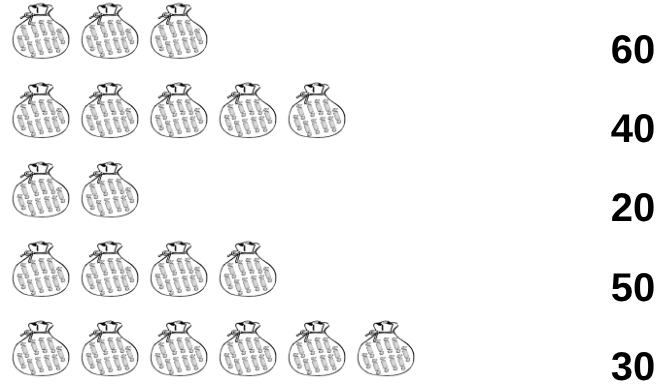 CADA BOLSITA TIENE 10 CARAMELOS. UNÍ CON FLECHAS LAS BOLSITAS Y LOS NÚMEROS![]()