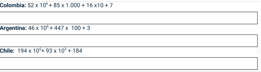 Escribí en números la cantidad de habitantes de China y Estados Unidos