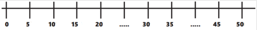3. En esta recta aparecen los números ordenados de 5 en 5. Completá los que faltan sobre las líneas punteadas