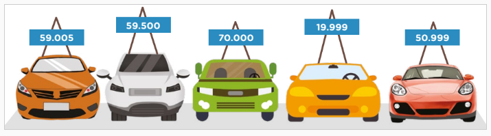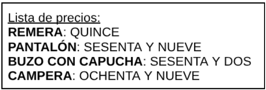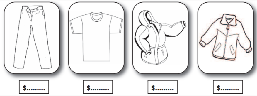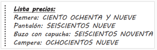 1. En la vidriera de un negocio están colocando los carteles con los precios de los productos. En la lista está la información de cada precio. Escribí los números con el precio que corresponde a cada cartel.