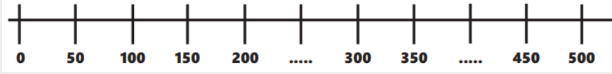 3. En esta recta aparecen los números ordenados de 50 en 50. Completá los que faltan sobre las líneas punteadas