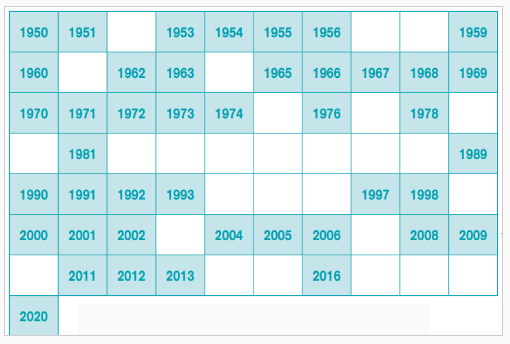 En este cuadro hay números ordenados desde el 1950 hasta el 2020. ¿Se animan a completarlo? Hay que llenar los casilleros blancos.
