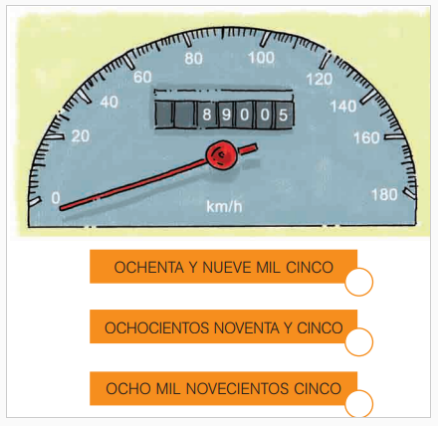 El cuentakilómetros de la camioneta de Manuel indica la distancia que recorrió hasta ahora. Marquen con una cruz el cartel que corresponde a la cantidad que recorrió.