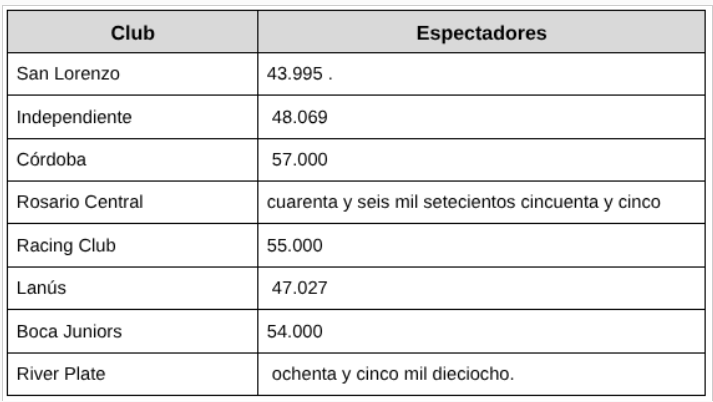 a) Escribí en números la cantidad de espectadores de los estadios de River Plate y Rosario Central