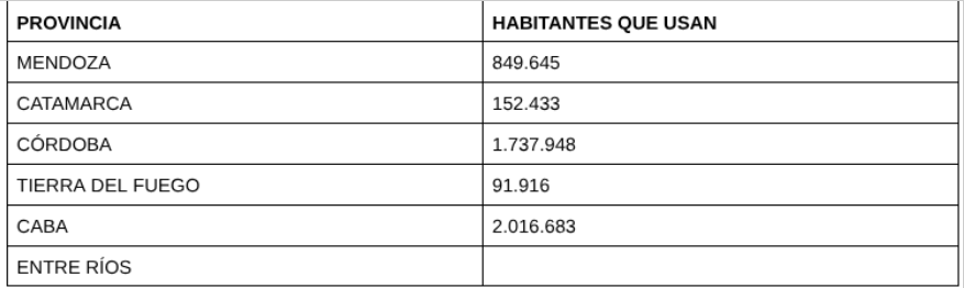 1. En esta tabla se presenta la cantidad de habitantes de algunas provincias de nuestro país que, según el Censo Nacional de 2010, usan computadora.