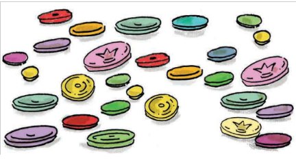 Jugando con tapitasEn un juego de emboque se tiran tapitas en recipientes con diferentes puntajes. Cada jugador debe tirar sus tapitas y por cada una que ingresa al vaso se suma el puntaje indicado. a. Pablo tiró 10 tapitas. Embocó solamente en algunos vasos.
