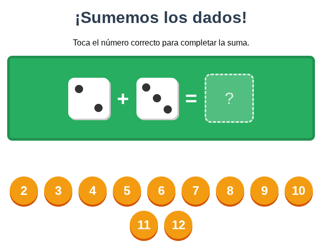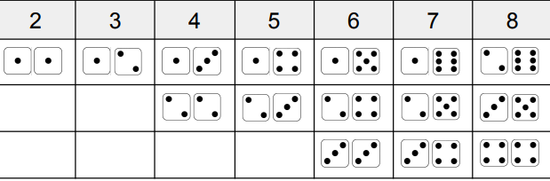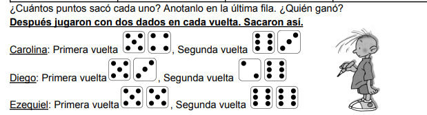 Sumas con dados: Este archivo tiene todas las sumas posibles con dos dados y una hoja con posibles cartones de lotería para jugar tirando dos dados. Descargar![]() Para jugar y sumar: Descargar Primero se juega con los dados y con los niños/niñas y luego hay hipotéticas jugadas. ![]() Caras de los dados: En este archivo hay tiras con las caras de los dados para imprimir y recortar Descargar Imágenes sueltas de las caras de los dados: Son para copiar y pegar en la hoja de trabajo. A veces en la previsualización no se ve bien pero cuando se copia o se ve como imagen en ventana nueva está completa. |
